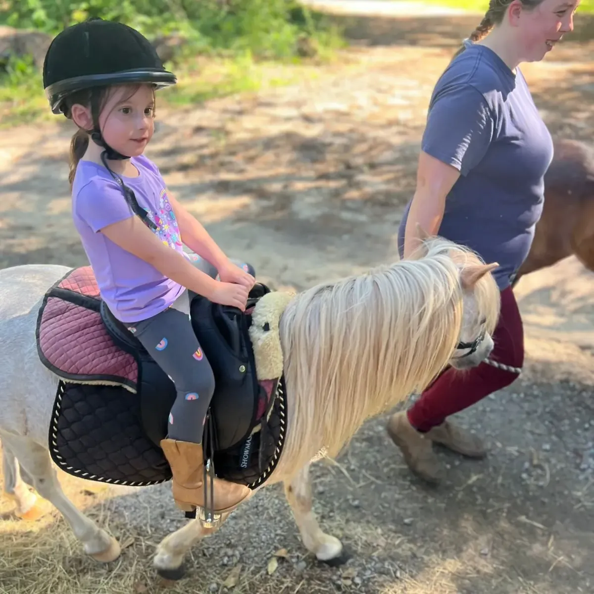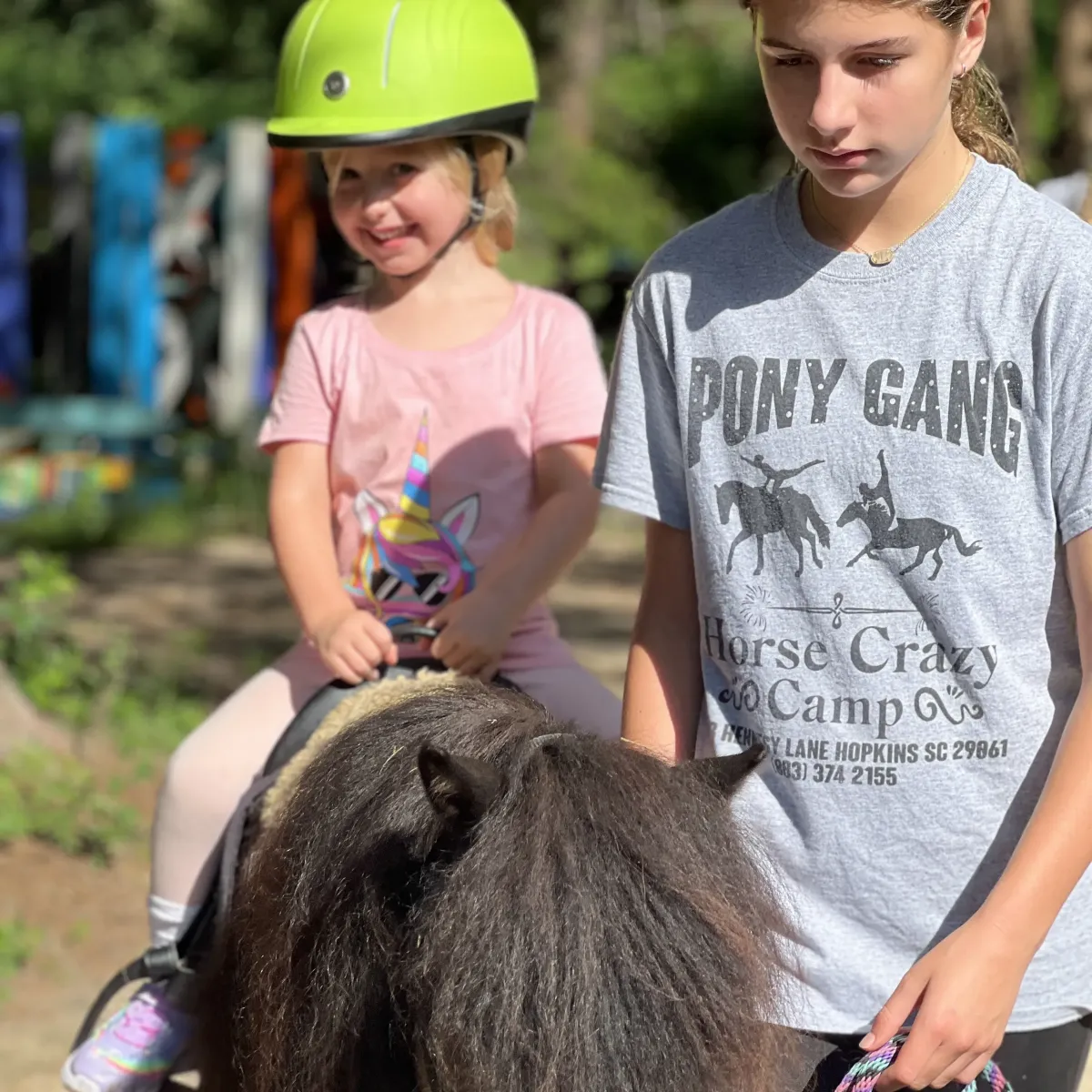 At our Tiny Tot Horse Camp, campers get the unique opportunity to ride ponies and miniature horses, selected specifically for their small stature to ensure a secure and ideal riding experience. This method not only enriches the learning experience but also ensures it's a joyous one, fostering a profound love for horseback riding early on.